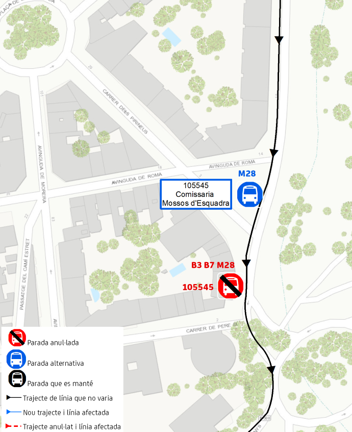 A partir de divendres 10 d'octubte de 2025, es trasllada de forma definitiva la parada Comissaria Mossos d'Esquadra de Badalona. L'itinerari de la línia no queda afectat tal i com s'indica al plànol següent: